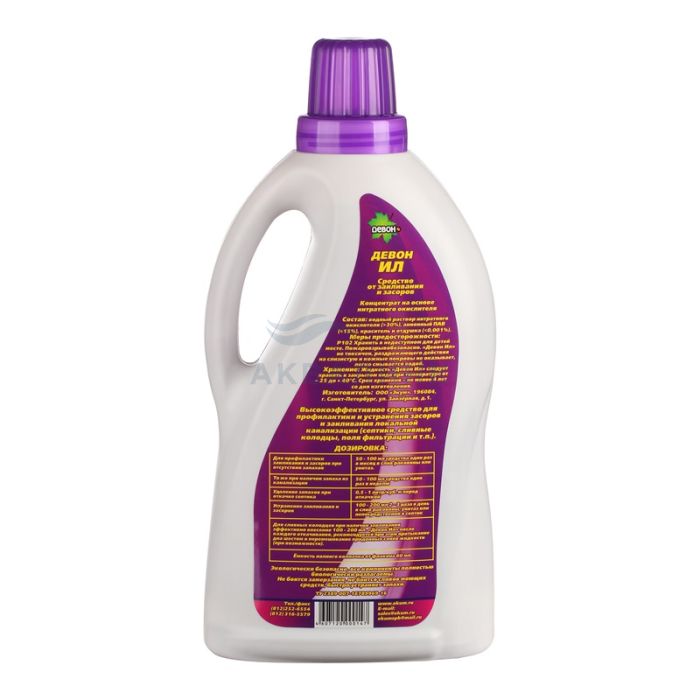 Средство «Девон-ИЛ» - это высокоэффективное средство для профилактики и устранения засоров и заиливания локальной канализации (септики, сливные колодцы, поля фильтрации и т.п.). Жидкость "Девон-ИЛ" быстро и эффективно устраняет неприятные запахи, не боится замерзания, не боится сливов моющих средств, экологически безопасно. Концентрат на основе нитратного окислителя - обычное азотное удобрение. Жидкость "Девон-ИЛ" - безопасная рецептура, усиленная формула, гарантированная эффективность.