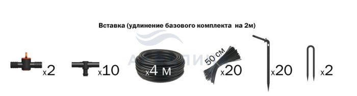 Удлинение для системы полива "Водомерка" - 2 метра. Количество капельниц - 20 штук.