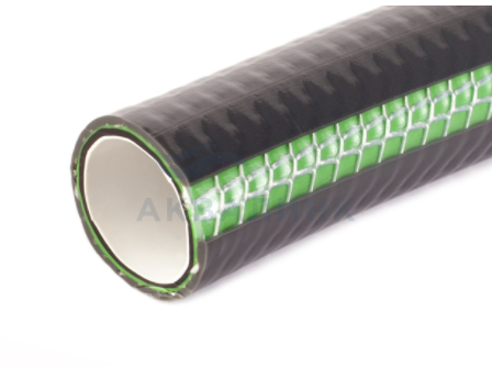 Пятислойный, армированный высокопрочной синтетической нитью шланг для полива, перекачки и прочих работ с жидкостями, в том числе с пищевыми. Внутренний слой ПВХ непрозрачный, белый, обладает бактерицидными свойствами и препятствует образованию водорослей внутри тела шланга и вредных микроорганизмов. Наружный ПВХ слой прозрачный, имеет, специальные защитные добавки от воздействия внешних факторов , таких как ультрафиолетовое излучение, истирание. Между внутренним и наружным ПВХ слоями расположены два дополнительных слоя, которые предотвращают проникновение солнечных лучей и создают дополнительное усиление телу шланга, а так же, слой текстильного плетения, который предотвращает скручивание и заломы шланга. Рабочая температура -5°С / +40°С Рабочее давление 8 бар