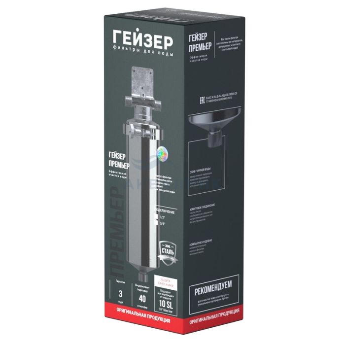 Гейзер-Премьер 10SL 1/2" устанавливается на вход в систему горячего или холодного водоснабжения. Корпус фильтра изготовлен из высококачественной нержавеющей стали марки 304L, устойчивой к возникновению коррозии, что гарантирует высокую надежность и многолетнюю работу фильтра. Гейзер-Премьер 10SL 1/2" легко подключается к магистрали и легко обслуживается. Хомутовое крепление крышки позволяет легко извлечь картридж без использования дополнительных ключей. Также для замены картриджа предусмотрено удобное отверстие для слива воды. • Используется с картриджами стандарта Slim Line 10". • Присоединительный размер 1/2". • Легкая замена картриджа. • Выдерживает давление до 8 атм. • Нержавеющая сталь марки 304L. • Температура воды (°С): 4-95 • Гарантия: 3 года.