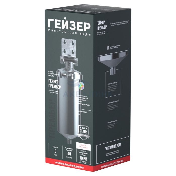 Гейзер-Премьер 10BB 1" устанавливается на вход в систему горячего или холодного водоснабжения. Корпус фильтра изготовлен из высококачественной нержавеющей стали марки 304L, устойчивой к возникновению коррозии, что гарантирует высокую надежность и многолетнюю работу фильтра. Гейзер-Премьер 10BB 1" легко подключается к магистрали и легко обслуживается. Хомутовое крепление крышки позволяет легко извлечь картридж без использования дополнительных ключей. Также для замены картриджа предусмотрено удобное отверстие для слива воды. • Используется с картриджами стандарта Big Blue 10". • Присоединительный размер 1". • Более высокая производительность и ресурс за счет использования картриджей стандарта BB. • Легкая замена картриджа. • Выдерживает давление до 8 атм. • Нержавеющая сталь марки 304L. • Температура воды (°С): 4-95 • Гарантия: 3 года.