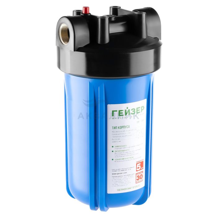 Корпус Гейзер 10BB изготовлен из синего полипропилена; крышка корпуса – черный полипропилен с латунными вставками. Корпус рассчитан на работу под давлением и установку на входе в систему холодного водоснабжения. В производстве корпусов используется только первичное сырье пищевого класса. • Используется с картриджами стандарта Big Blue 10". • Присоединительный размер 1". • Более высокая производительность и ресурс за счет использования картриджей стандарта BB. • Производство: Россия. Гарантия 5 лет. • Максимальное рабочее давление 7 атм. • Максимальная рабочая температура 40 °С•