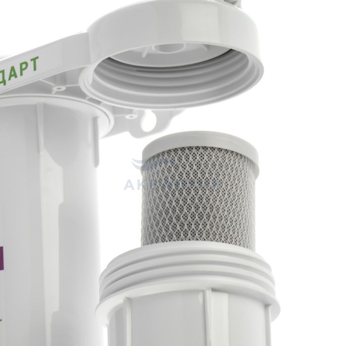 PP 5 - 10SL Вспененный полипропилен. Предочистка. БАФ Универсальный картридж для удаления хлора, органических примесей, железа и тяжелых металлов. Ресурс до 12000 л СВС 1 Финишная очистка воды. Ресурс до 7000 л Кран для чистой воды №3 Ключ для корпуса Ключ для донной заглушки Чашка декоративная Резиновая прокладка Шайба пластмассовая Гайка крепежная с шайбой Пистон Гайка цангового зажима 1/4” Трубка соединительная 1/4” Тройник-адаптер с краном Инструкция Упаковка