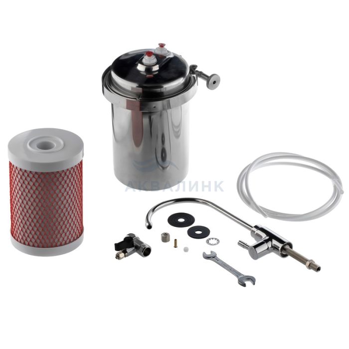 Компактная система для очистки воды. Фильтр Гейзер ЭКО разработан для регионов с низким и средним уровнем минерализации воды. В фильтре используется композиционный картридж Арагон 3 ЭКО, состоящий из предфильтра, материала Арагон и высококачественного кокосового угля. Очищает воду от нерастворимых примесей, железа, органических соединений и хлора. Нормализует жесткость воды. Корпус фильтра выполнен из пищевой нержавеющей стали. Хомутовое соединение фильтра обеспечивает легкую замену картриджа. Прост в установке и обслуживании. Важным свойством является самоидикация – фильтр сам подскажет, когда пришло время менять картриджи (уменьшение напора в кране для чистой воды).