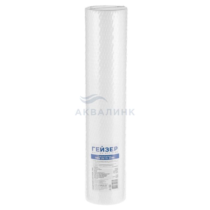 Для холодной воды. Картридж ПФМ 20/10 – 20ВВ предназначен для очистки воды от нерастворимых примесей (более 10 мкм). Производство: Россия. Картридж ПФМ 20/10 – 20ВВ изготовлен из вспененного полипропилена. Имеет градиентную пористость: диаметр поры уменьшается при движении воды внутрь картриджа, благодаря чему работает весь объем фильтрующего материала. Температура очищаемой воды 4-50°С Производительность — 3,6 м3/час Ресурс 800 м3 (зависит от качества исходной воды) Типоразмеры (высота/диаметр), ВВ 20” (Ø 114 мм)