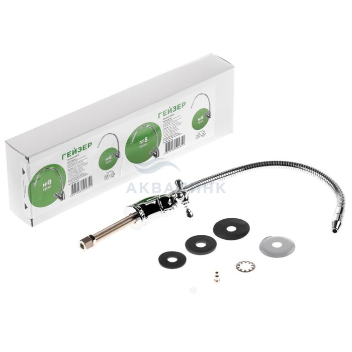 Применяется для регулирования подачи холодной воды, очищенной с помощью бытовых фильтров Гейзер. Гибкий излив в металлической оплетке позволяет изменять наклон крана для подачи воды. Кран изготовлен из современных экологически безопасных материалов с нанесением особо прочного хромированного покрытия и рассчитан на работу с холодной водой. Кран устанавливается на мойку или столешницу в любом удобном для эксплуатации месте. Комплект поставки Кран для чистой воды Чашка декоративная Резиновая прокладка (большая сверху, малая снизу) 2 шт. Шайба опорная пластмассовая Гайка крепежная (гровер-шайба сверху) Гайка цангового зажима Пистон металлический Инструкция Упаковка