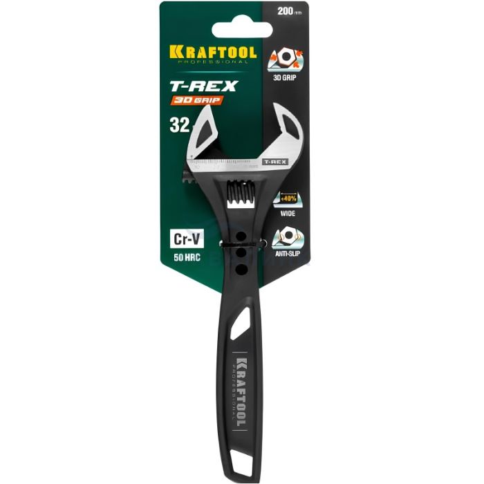 Разводной силовой ключ T-REX, 200 / 32 мм KRAFTOOL 27254-20 удобен в использовании засчет шероховатой поверхности рукоятки. Благодаря регулировке с большим числом витков обеспечивается более точная настройка захвата.
