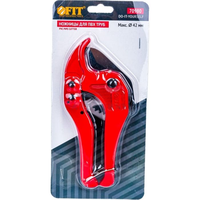 Ножницы для металлопластиковых трубок 42 мм FIT 70980 имеют облегченную конструкцию за счет корпуса из алюминиевого сплава. Инструмент предназначен для резки пластиковых и металлопластиковых трубок диаметром до 42 мм. Прочное стальное лезвие рассчитано на долгий срок службы. Особенности ножниц FIT 70980: - Прочность. Рабочее лезвие ножниц для металлопластиковых трубок 42 мм FIT 70980 выполнено из прочной и качественной стали. - Надежная фиксация. Рукоятки инструмента скрепляются специальным зажимом для безопасного хранения.