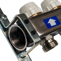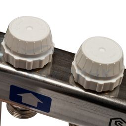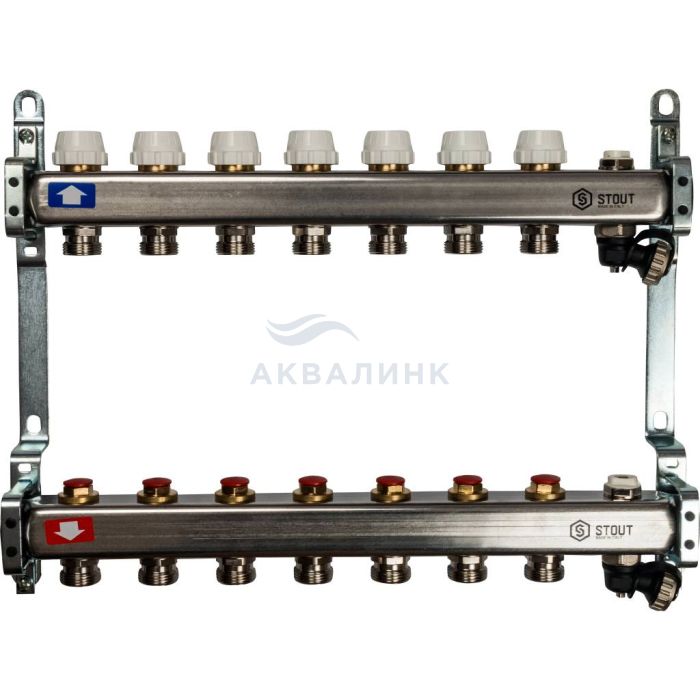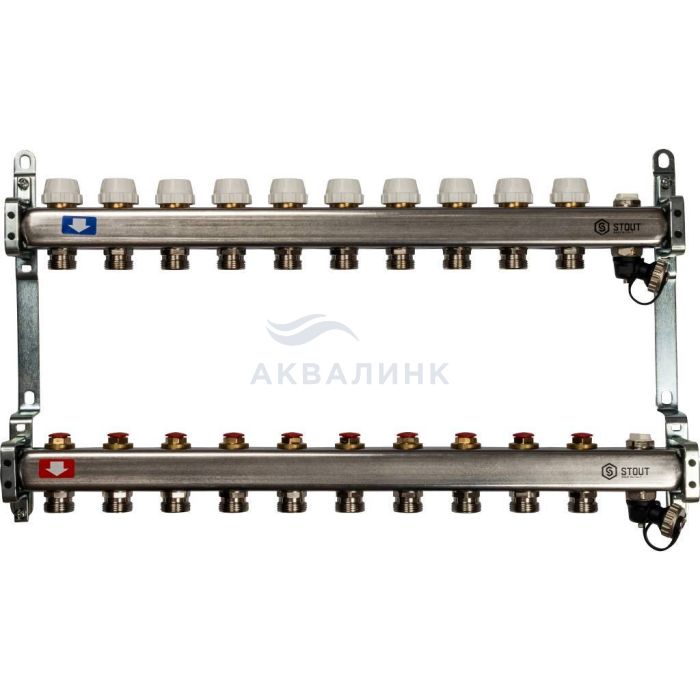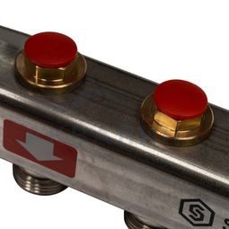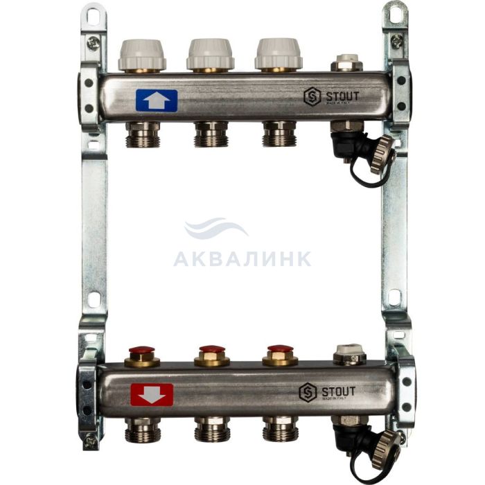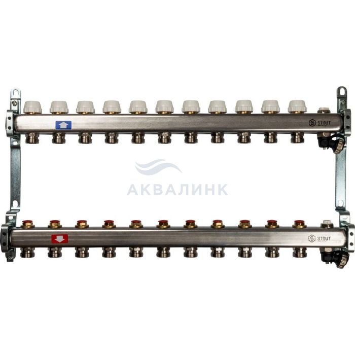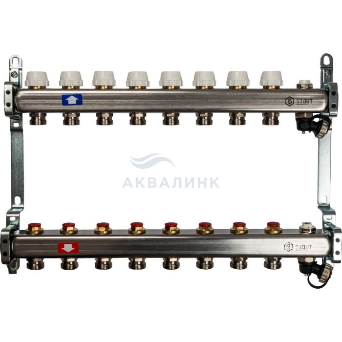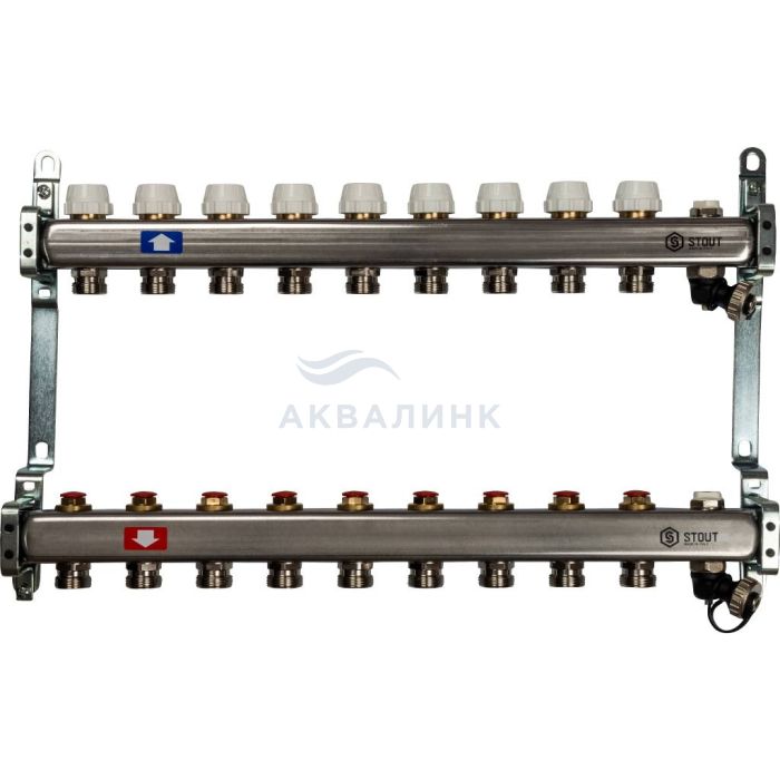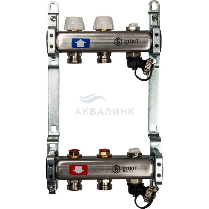 Коллекторные распределительные блоки типа SMS STOUT – предназначены для улучшения производительности систем отопления зданий, за счет равномерного распределения теплоносителя по контурам. Коллекторы могут использоваться как в домах индивидуальной застройки, так и в системах отопления многоквартирных жилых зданий, где требуется распределение потока теплоносителя между помещениями на этаже многоквартирного многоэтажного жилого или административного здания. Комплектация коллектора Stout SMS 0932: - 1 обратный коллектор - 1 подающий коллектор - 2 цельнометаллических кронштейна - 2 клапана вып.воздуха и 2 сливных крана