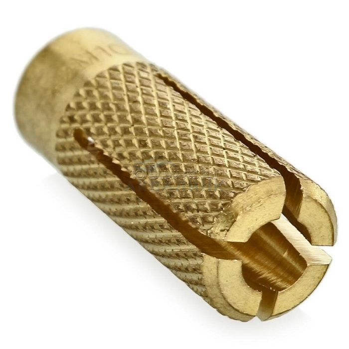 Анкер забивной латунный (цанга) – распорный элемент, используемый для крепления изделий, инженерных коммуникаций к твердому основанию стены. Технические характеристики анкера: Диаметр резьбы М6/ М8/М10 Диаметр установки, мм 8 /10/12 Длина анкера, мм 24/ 30/34