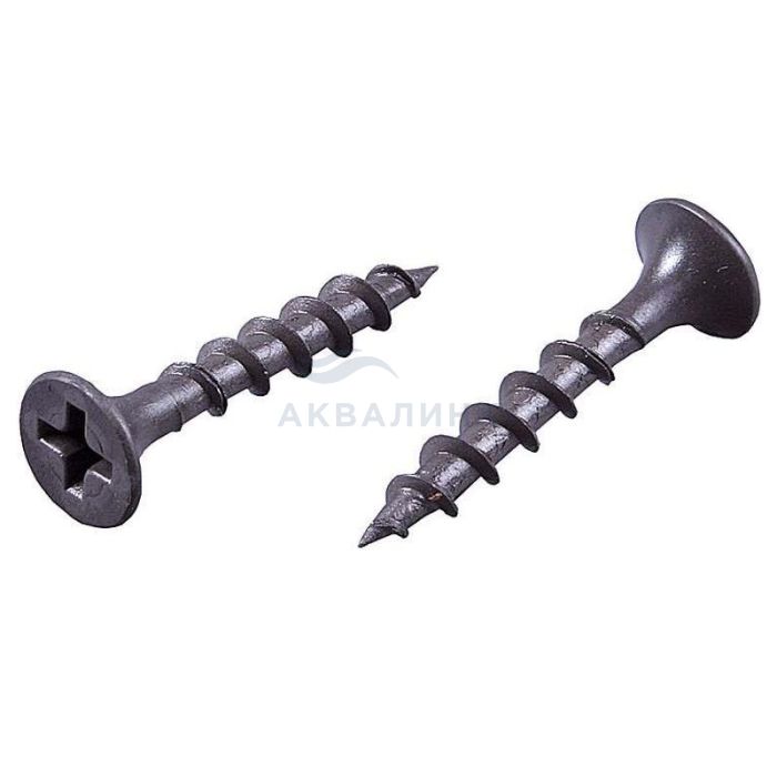 Саморез ГКЛ по дереву - используется для фиксации гипсокартонных плит на деревянном основании: брус, фанера, ДСП, OSB. Саморезы имеют потайную головку с крестообразным шлицем PH2, острый наконечник и редкую резьбу. Производятся из углеродистой стали, фосфатирован для защиты от коррозии.