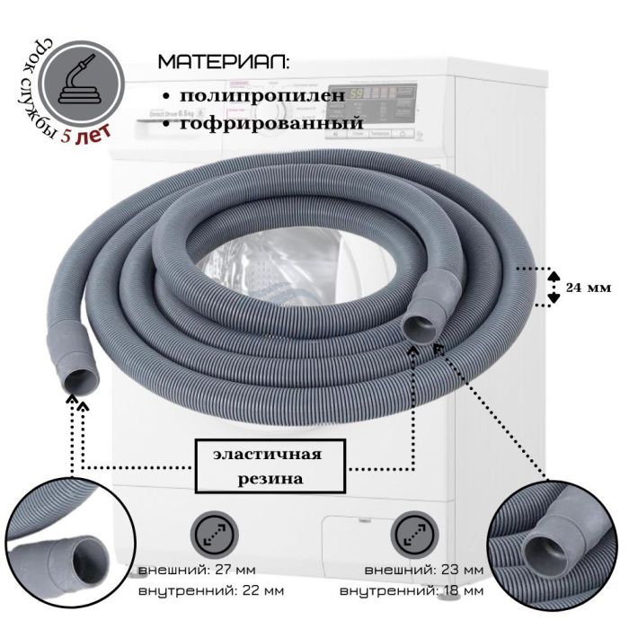 ELKA заливные и сливные шланги для подачи и отвода воды в стиральную машиe, длиной от 1 до 5 метров, под собственной торговой маркой из качественного ПВХ. Для подключения сантехники к водопроводной системе и канализации, может потребоваться шланги разной длины. Рабочее давление шлангов до 30 Bar. Средний срок службы шланга для стиральной машины составляет 3-5 лет. Подключение на гайках: 3/4, один выход по 90С, второй под 180С