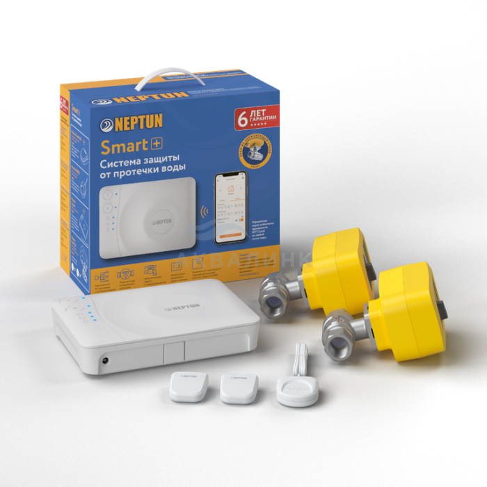 Диаметр трубы - 1/2 дюйма Модуль управления Neptun Smart+ - 1 шт Кран шаровый с электроприводом Neptun Profi 12В 1/2 дюйма - 2 шт Радиодатчик Neptun Smart 868 - 2 шт. Датчик проводной SW005 (длина 2 м.) - 1 шт. Поддерживает беспроводные и проводные датчики Управление и контроль через приложение на смартфоне Мониторинг через смартфон показаний счетчиков расхода горячей и холодной воды Возможность дополнить блок управления модулями расширениями - RS-485 Удаленное управление в мобильном приложении Tuya Smart