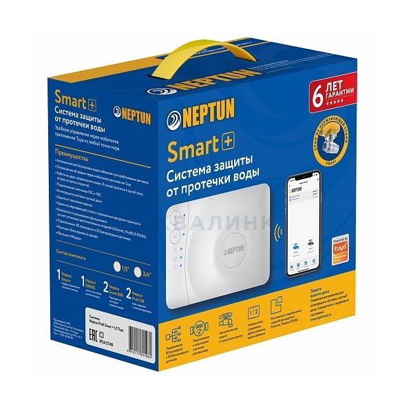 Диаметр трубы - 3/4 дюйма Модуль управления Neptun Smart+ - 1 шт Кран шаровый с электроприводом Neptun Profi 12В 3/4 дюйма - 2 шт Радиодатчик Neptun Smart 868 - 2 шт. Датчик проводной SW005 (длина 2 м.) - 1 шт. Поддерживает беспроводные и проводные датчики Управление и контроль через приложение на смартфоне Мониторинг через смартфон показаний счетчиков расхода горячей и холодной воды Возможность дополнить блок управления модулями расширениями - RS-485, LAN Удаленное управление в мобильном приложении Tuya Smart Умная система защиты от протечки воды Neptun PROFI Smart+ предназначена для обнаружения и локализации протечек воды в системах водоснабжения. Компоненты системы связаны и взаимодействуют друг с другом через центральный контроллер (модуль управления Neptun Smart+), который может быть укомплектован дополнительными платами расширения: • RS-485 (для систем диспетчеризации); • Ethern
