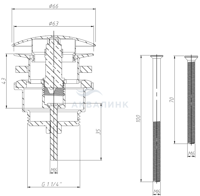 Клапан донный AlcaPlast А395 с большой заглушкой без перелива