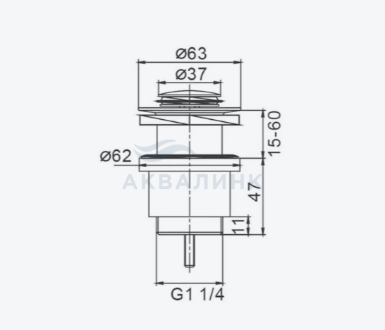 Клапан донный AlcaPlast А391 с малой заглушкой и переливом