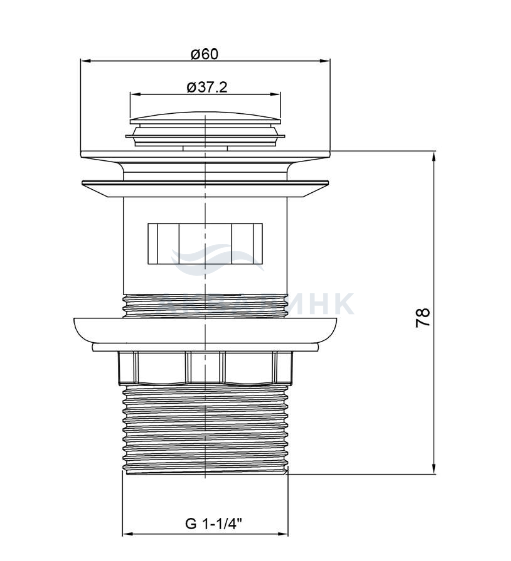 Клапан донный Terma Click-Clack 10103 c маленькой кнопкой, с переливом, Черный жемчуг