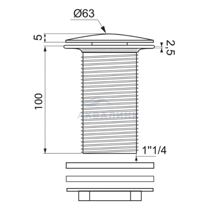 Высота: 100 мм Вход: 1-1/4" Выпуск: FREE FLOW без перелива Ø63 мм Материал: Латунь Цвет: Черный, хромированный