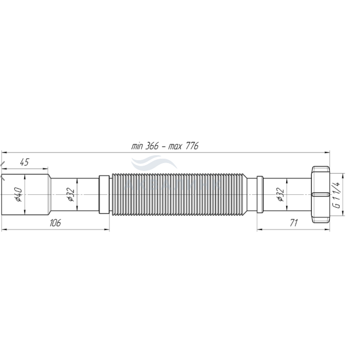 Гофра АНИ Пласт K207 с гайкой 1-1/4"х32/40, длина 366-776мм