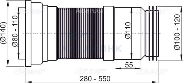 Диаметр подключения 80/110 х 100/120 мм Регулируемая длина от 280 до 550 мм Подходит для реконструкции Возможность подключения к канализации с помощью HT подвода или манжеты, или обеих вариантов для максимального уплотнения Материал - полипропилен