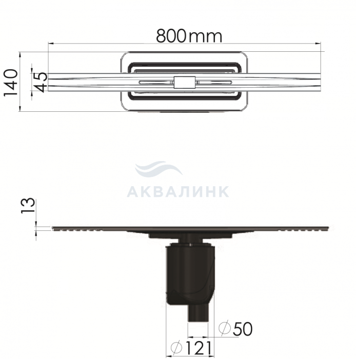 Канал дренажный Berges SIMPEL, матовый хром, вертикальный выпуск S-сифон D50/105мм H30/80мм