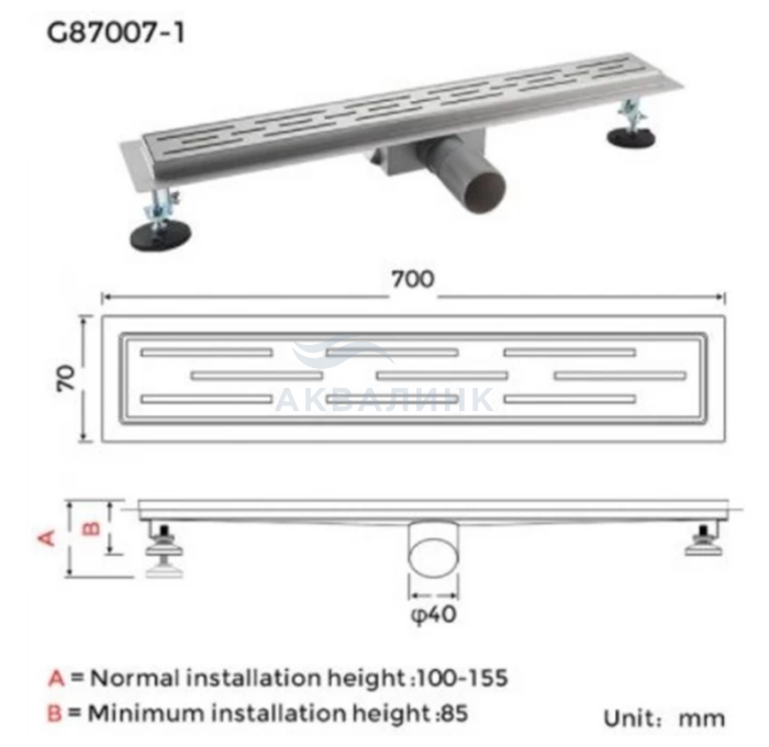 Канал дренажный Gappo G87007-1 70х700 мм сатин