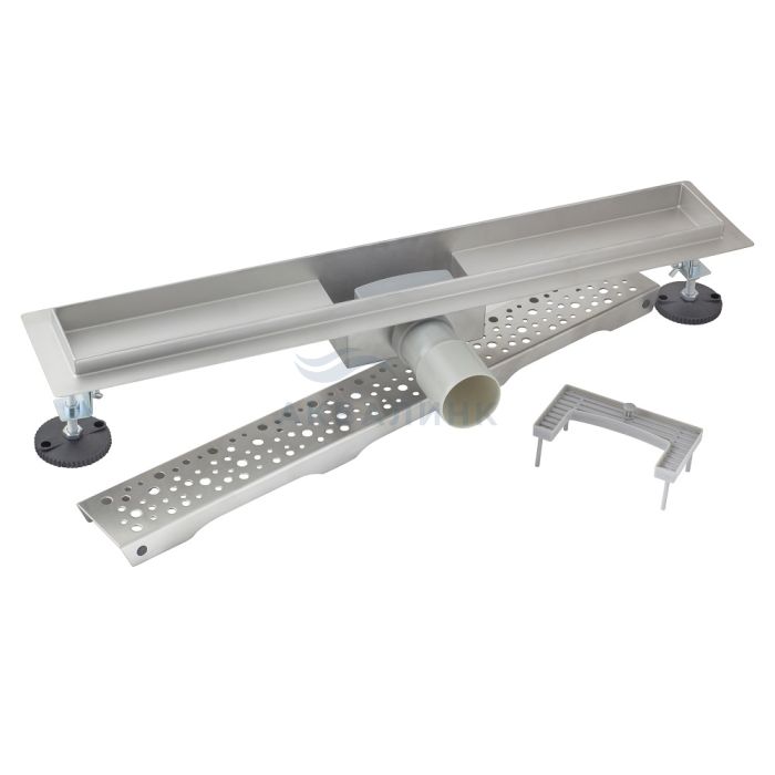 Устанавливается в душевых и там, где организован слив воды прямо на пол. Комплектация Трап лотковый из нержавеющей стали - 1 шт Решетка из нержавеющей стали - 1 шт Ножки регулируемые по высоте - 2 шт Гидроизоляционный материал - 1 шт Ключ для снятия решетки - 1 шт Переходник пластиковый для подключения к фановой трубе D40/50 - 1 шт