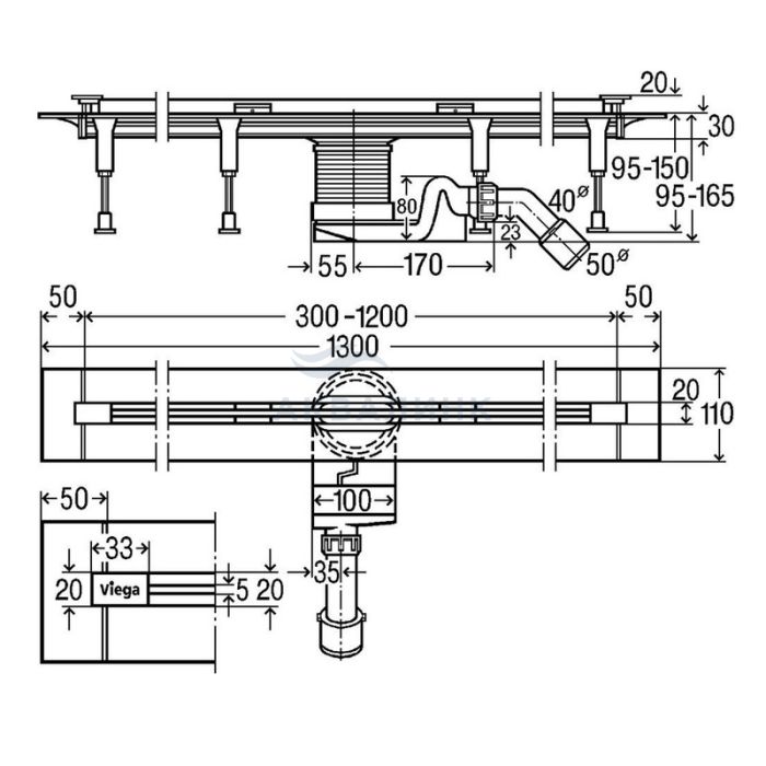 Канал дренажный Viega Advantix Vario Set с решеткой, глянцевый хром 300-1200мм 704360