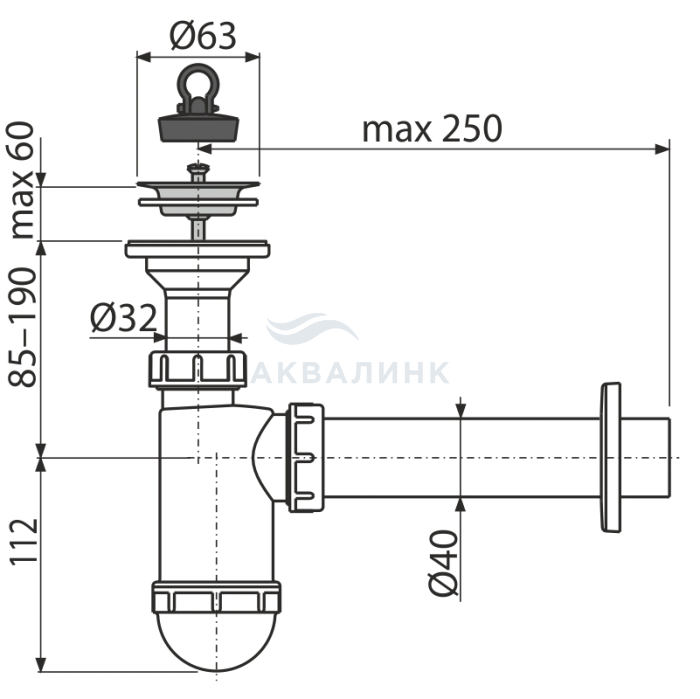A41 Сифон для умывальника DN40 с нержавеющей решеткой DN63