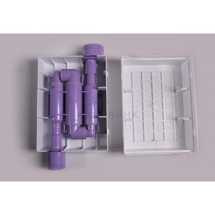 Сифон разработан для устранения неприятных запахов, образующихся в дренажной трубке при сливе конденсата в канализацию. Актуально при отводе конденсата внутри или непосредственной близости от дома, офиса или зоны активной жизнедеятельности. Некоторые существующие сифоны-аналоги устанавливаются на стенах без какой-либо возможности их будущей проверки и контроля. Данный сифон позволяет контролировать его работу и обладает следующими характеристиками: - сифон может быть проверен, т.к. он устанавливается в пластиковом открывающемся боксе; - сифон имеет небольшой размер; - сифон имеет два входных и два выходных отверстия, что позволяет устанавливать сифон в любом месте системы, диаметр подводимых трубок - 5/8"; - сифон изготовлен из прозрачного пластика, что позволяет визуально наблюдать нормальное протекание конденсата через сифон. В стандартный комплект сифона входит набор уплотнительн