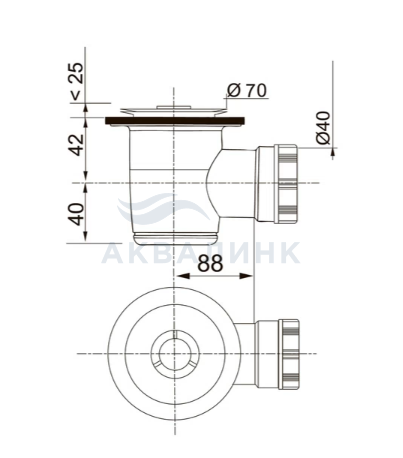 Сифон АНИ Пласт F1045S 3-1/2х40 прямоточный, c отводом для стир. машины, с переливом