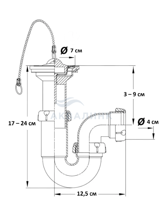 Сифон АНИ Пласт F1045S 3-1/2х40 прямоточный, c отводом для стир. машины, с переливом