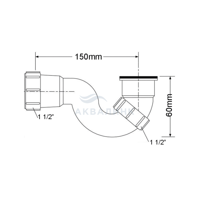 Сифон трубный Р-образный (1 1/2"х40мм) без выпуска; высота 60мм; выход компрессионный Ду=40мм