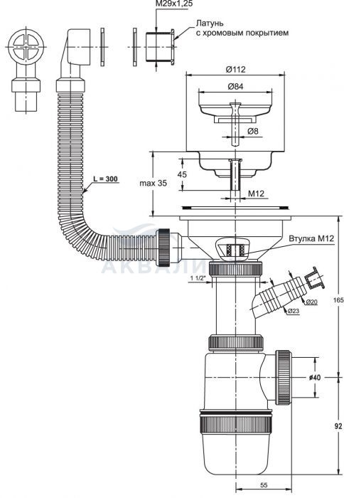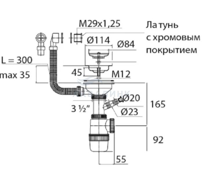 Сифон VIRPlast Элит D112 для мойки, c отводом для стиральной машины, круглый перелив 30986177