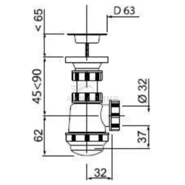 Сифон АНИ Пласт F1045S 3-1/2х40 прямоточный, c отводом для стир. машины, с переливом