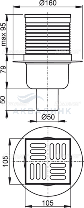 Трап AlcaPlast APV2 100 х 100/50 вертикальный с металлической решеткой