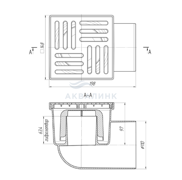 Трап АНИ Пласт 150х150/100мм горизонтальный ТА 1110
