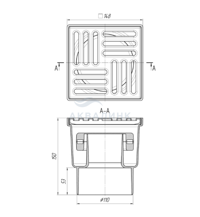 Трап АНИ Пласт 150х150/110мм вертикнальный TQ1212