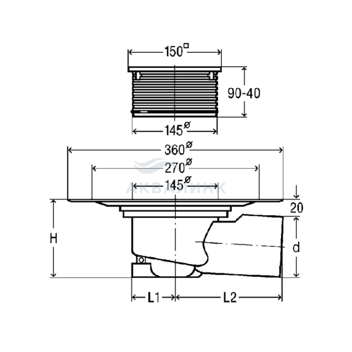 Трап Viega 4955.1 150х150/100 горизонтальный с металлической решеткой 557171