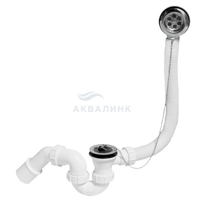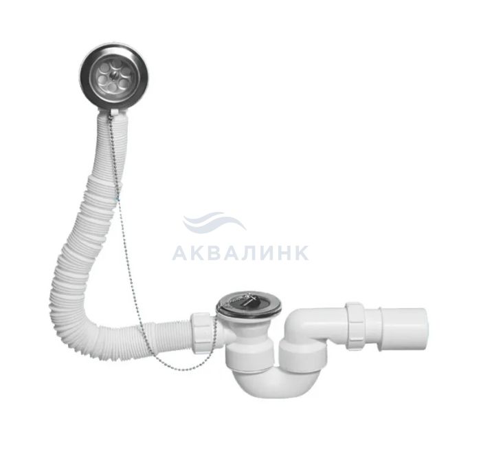 Трап неразборный для ванн с раздвижным переливом (L310-720ммхD34/40мм), нержавеющими решетками, пробкой и цепочкой; выход Дн=40/50мм
