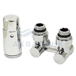 Комплект узел нижнего подключения угловой , хром G 3/4 x 3/4 D=50 мм с термоголовкой MINI M30x1,5 + 2 Ниппеля 1/2x3/4. Дизайнерские вентили серии Standard Mini предназначены для установки декоративных дизайн радиаторов и полотенцесушителей. В комплект поставки входит 2 клапана (на подачу и обратку) и термоголовка с разъемом M30x1,5 Технические параметры Макс. рабочее / опрессовочное давление: PN 10 / 15 атм. Макс. рабочая температура: 120 °C (кратковременно до 130°C