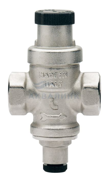Компенсационного действия. Резьбы ВР-ВР. Корпус никелированная латунь. Минимальная и максимальная рабочие температуры: 0°C, 80°C. Максимальное входное давление: 15 bar. Выходное давление м.б. выставлено от 1 до 4 bar. Заводская уставка: 3 bar.