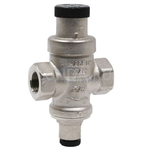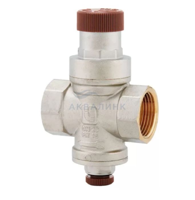 Компенсационного действия. Резьбы ВР-ВР. Корпус никелированная латунь. Минимальная и максимальная рабочие температуры: 0°C, 80°C. Максимальное входное давление: 15 bar. Выходное давление м.б. выставлено от 1 до 4 bar. Заводская уставка: 3 bar. Выход для манометра 1/4”.