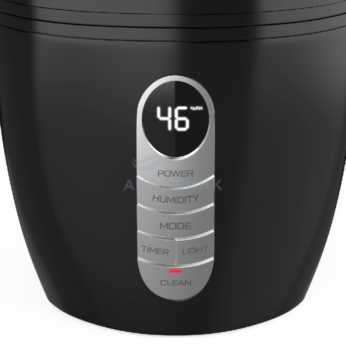 ТОВАР СНЯТ С ПРОИЗВОДСТВА!! 3 функции в 1 приборе: Увлажнитель + Ароматизатор + Гигрометр. Эффективное увлажнение воздуха до 300 мл в час. Оптимальный объём резервуара 5,7 литра. До 19 часов непрерывной работы без долива воды в резервуар. Контроль уровня влажности от 30 до 80 %. Встроенный гигростат для поддержания желаемого уровня влажности. Удобная эксплуатация и надёжная конструкция. Электронная панель управления имеет 3 режима скорости выхода пара, таймер, индикация относительной влажности воздуха. Функция CLEAN подскажет, когда надо будет провести чистку прибора.