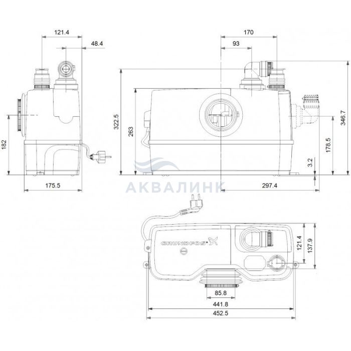 Насос Grundfos Sololift2 WC-1 представляет собой компактную, готовую к монтажу, автоматическую канализационную насосную установку со встроенным профессиональным режущим механизмом. Используется в частных домах для перекачивания сточных вод с фекалиями. Sololift2 WC-1 подходит для перекачивания сточных вод от умывальника и унитаза (с горизонтальным выходным патрубком согласно EN 33/37), содержащих туалетную бумагу и фекалии. Откачивание по вертикали составляет 8.5 м, по горизонтали - 100 м. Оборудован съёмным устройством сигнализации, которое вставляется в модуль сигнализатора с зуммером.