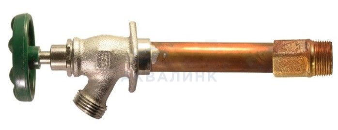 Незамерзающие уличные краны Arrowhead Brass серия 455 предназначены для круглогодичного, водоснабжения придомовых участков и хозяйственных построек, организации моечных пунктов, полива огородов и т.д. Кран монтируется внутри стены дома и подключается к системе водоснабжения внутри здания. Корпус крана с запорной рукояткой располагается снаружи. На изливе крана нарезана резьба для подключения садового шланга. Запорный механизм клапанного типа (запирающий элемент перемещается параллельно оси потока воды) находится внутри отапливаемого помещения. После перекрытия потока воды остатки воды сливаются из корпуса крана. Благодаря такой конструкции кран можно использовать круглогодично, даже при отрицательных температурах наружного воздуха.