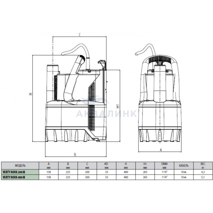 Насос со встроенным поплавковым выключателем и электрическим кабелем