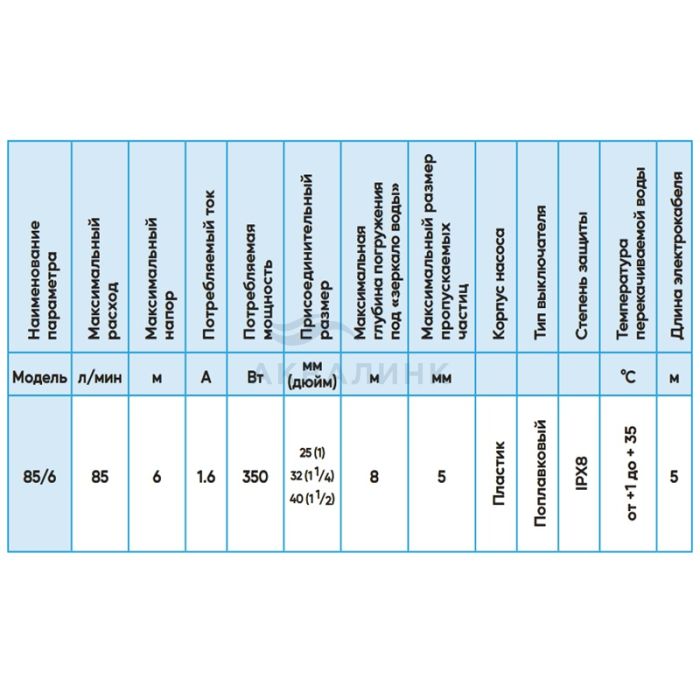Преимущества Джилекс ДРЕНАЖНИК 85/6 5153 Предусмотрен термопротектор для защиты от перегрева Отличается простотой установки и использования Практически не нуждается в обслуживании Небольшие габариты - компактная установка Крыльчатка и корпус из пластика устойчивы к образованию коррозии Автоматический контроль уровня воды Переносная ручка - удобство транспортировки
