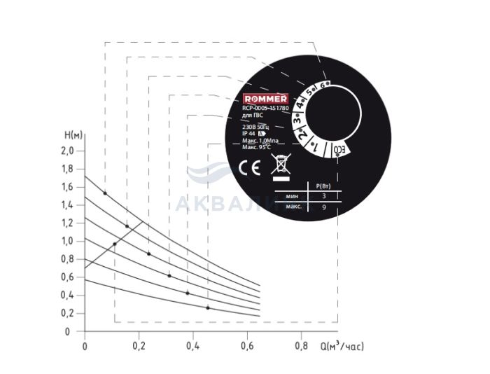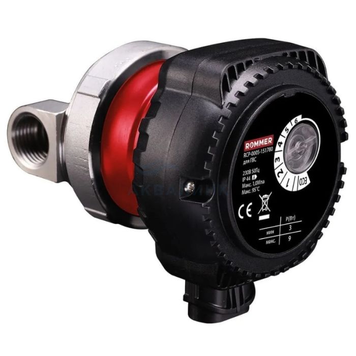 Циркуляционные насосы Rommer Profi для ГВС предназначены для постоянной циркуляции жидкости в системах горячего водоснабжения. Рециркуляция создается для предотвращения ее остывания в подводящих трубопроводах и немедленной подаче потребителю воды с надлежащими параметрами. Насосы работают с переменной частотой вращения. Высокая энергоэффективность до 80% достигается благодаря ротору на постоянных магнитах. Скорость насоса регулируется в соответствии с выбранным режимом работы (одним из семи). В режиме частотного регулирования насос автоматически подстраивается под текущие характеристики системы Насос может использоваться в качестве циркуляционного в системах отопления с гидравлическими потерями не более 15 Кпа, при этом в качестве рабочей среды могут использоваться растворы этиленгликоля и пропиленгликоля с концентрацией не выше 50%. В базовый комплект поставки входят: