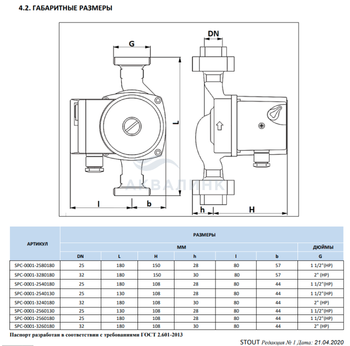 Насос циркуляционный STOUT 25/40-180
